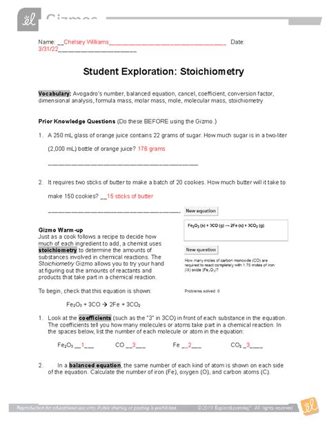 Read Online Student Exploration Stoichiometry Gizmo Answers Key PDF Doc Open Library